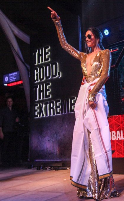 The duo interacted with fans at a special musical event, which saw performance from DJ Nucleya. Deepika, who wrapped a lungi over her golden Naeem Khan gown, taught the Hollywood star a few steps of her hit track.